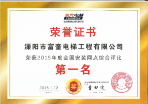 溧陽市富奎電梯工程有限公司 溧陽市富奎電梯工程有限公司是于二OO八年一月九日在原前身溧陽市電梯工程公司基礎(chǔ)上成立的,是專業(yè)從事電梯銷售安裝維修、保養(yǎng)的企業(yè)。是國家質(zhì)監(jiān)總局頒發(fā)的特種設(shè)備安裝、改造、維修A級安裝許可證單位。公司組織機構(gòu)實行總經(jīng)理負(fù)責(zé)制,公司下設(shè)管理部、銷售部、安裝維修部、質(zhì)安部、財務(wù)部,公司另外設(shè)十二個分公司:四川分公司、江蘇分公司、上海分公司、浙江分公司、湖南分公司、遼寧分公司、山東分...
